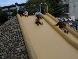 公園に着くと、子ども達はいつものように大好きな滑り台へ一直線!