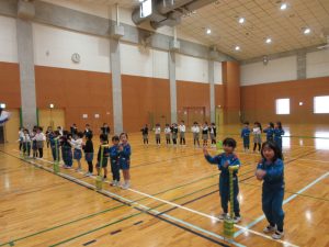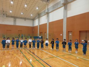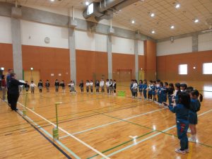 K2(年中クラス)は12月にあるクリスマスショーの練習のため体育館に行きました。